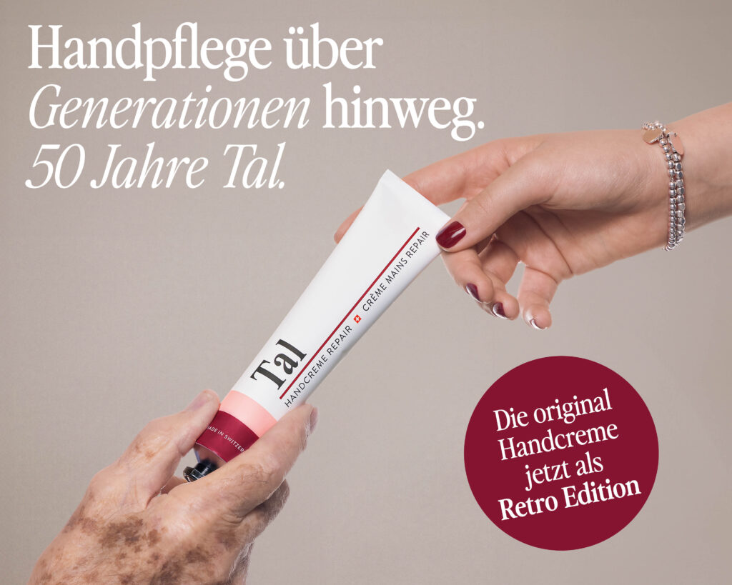 Zum 50. Geburtstag von Tal ist jetzt eine limitierte Retro Edition der ersten Tal Handcreme erhältlich. Eine elegante Verneigung vor den Anfängen und ein kraftvolles Zeichen für die Zukunft.